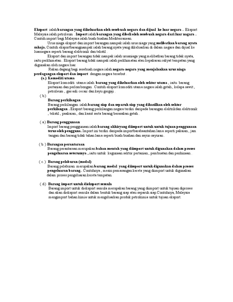 Institut Automotif Robotik dan IoT Malaysia MARii Institut Besi Malaysia MSI SIRIM Berhad. An export in international trade is a good or service produced in one country that is bought by someone in another country. Panduan Eksport Pemindahan Transit dan Broker Bagi Barang Strategik di Bawah Akta Perdagangan.